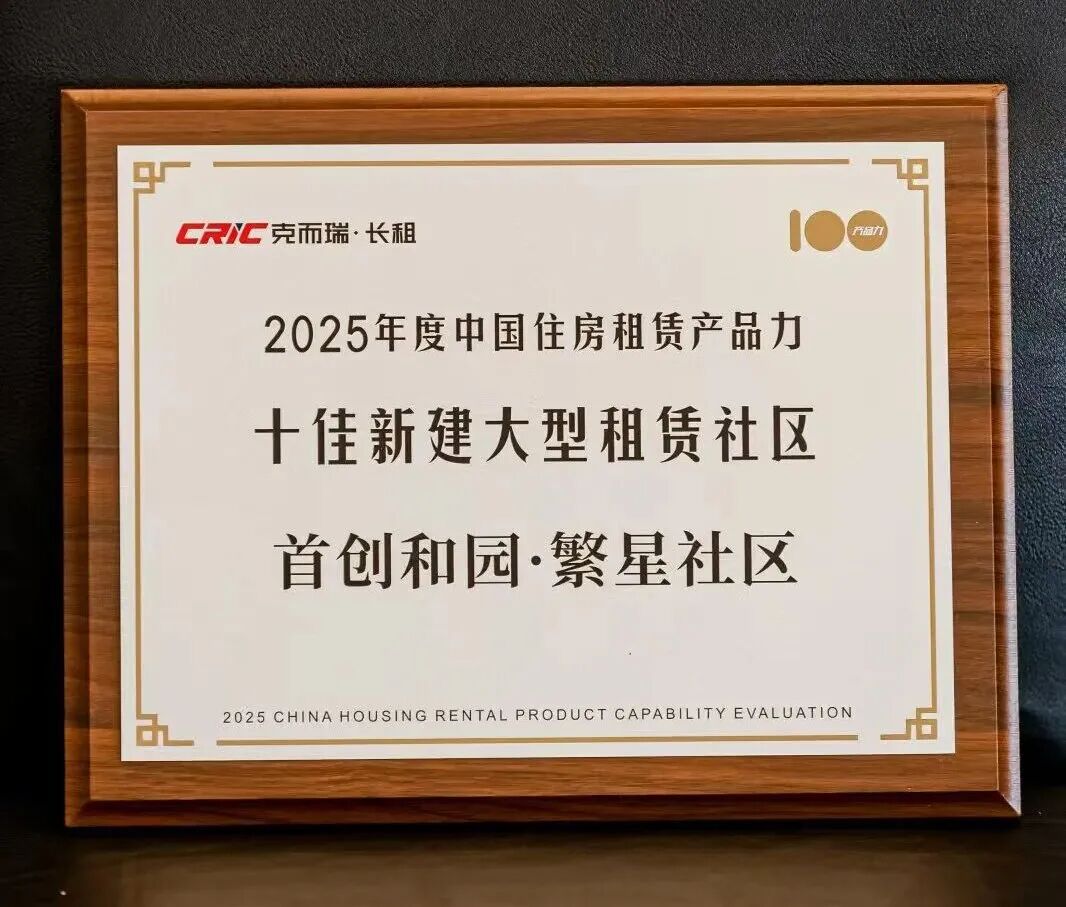 首创和园·繁星社区荣获“2025年度中国住房租赁产品力*十佳新建大型租赁社区”