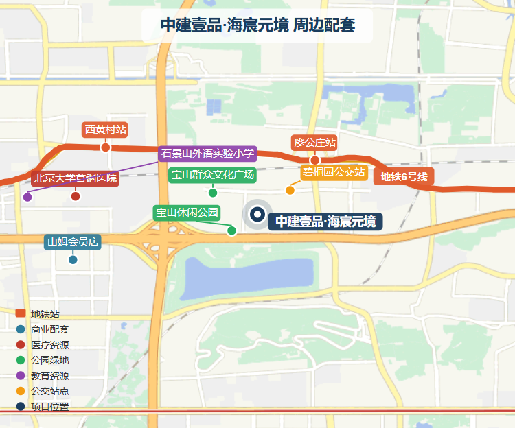 :周边有山姆会员店、京西大悦城、五棵松万达、华熙LIVE等大型商业体; 医疗