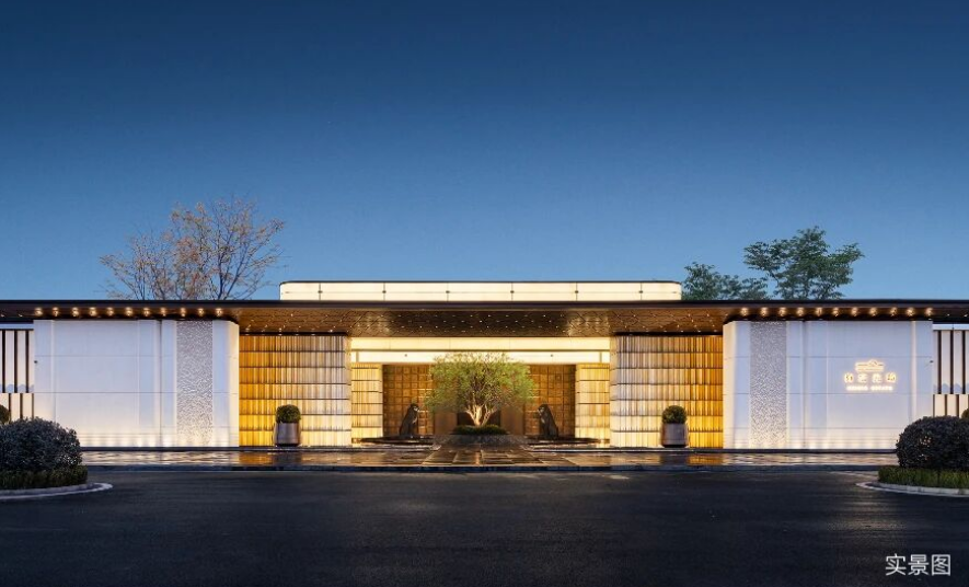项目的归家仪式感同样拉满。社区打造约200米超级城市界面,大门展面约68米,采用釉面陶板、贝金米黄石材等高端材质,尽显东方礼序之美。