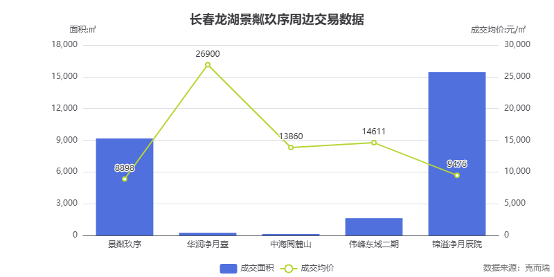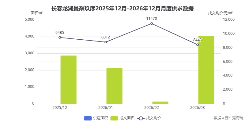 根据克而瑞数据,2026 年 1-3 月,龙湖景粼玖序成交 62 套,成交面积 9172㎡,成交均价约 8898 元/㎡。在净月区高端改善市场中,这一表现相当亮眼。