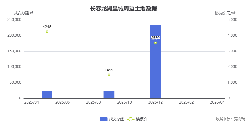 根据克而瑞数据显示,2025年4月至2026年4月期间,长春高新区高新板块的土地供应呈现明显的收缩趋势。特别是在2025年下半年至2026年初,新增供应用地大幅减少,这意味着核心区域的新房存量将成为不可再生的稀缺资源。