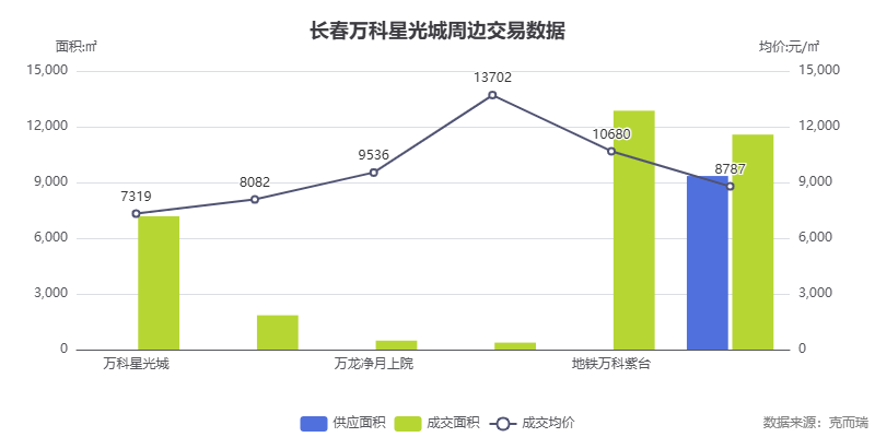 根据克而瑞数据,2026年3月,长春全市新房成交均价为8838元/㎡,净月区成交均价为9833元/㎡。在此背景下,万科星光城的市场表现呈现出“以价换量”的特征。
