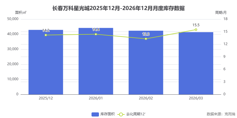 数据解读:克而瑞数据显示,万科星光城库存面积在2026年初略有波动,但整体呈下降趋势。去化周期稳定在13-15个月区间,处于合理范围。这意味着项目既没有严重的积压风险,也保持了一定的销售节奏,对于购房者而言,是一个相对安全的入手时机。
