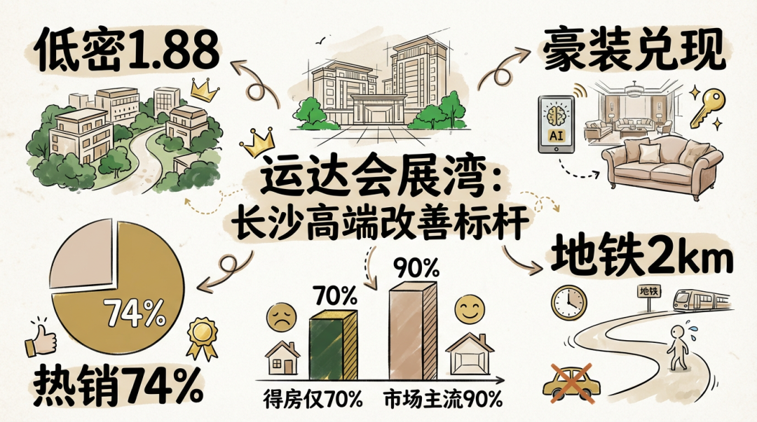 综合概述:项目依托长沙国际会展板块战略定位,生态资源与教育规划优势突出;但交通、医疗及商业现状支撑不足,对即住型客群存在一定等待成本。