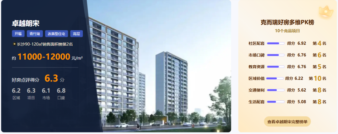 来源:克而瑞·决策专家「顾一宁」数据分析生成 项目定位:长沙开福区青竹湖板块 | 改善兼刚需型住宅 | 学区+高得房率盘 核心总结:以青竹湖湘一学区与100%得房率为核心标签的性价比改善盘,精准匹配预算有限但重视子女教育与空间实用性的家庭需求,但区域配套成熟度与市场热度为主要短板。 数据来源:克而瑞好房点评网 一、四大维度综合测评 1.项目价值:6.29/10 高得房率盘,零公摊实用性强 综合概述:卓越朗宋在项目价值维度表现中规中矩,以100%得房率构建核心竞争优势,显著提升空间实用性与性价比,但绿化与社区配套表现中规中矩,车位配置略显不足。 细分维度 得分 关键描述 得房率 9.5 高达100%,实现“零公摊”设计,88㎡户型可多得约13.2㎡使用面积 社区配套 6.9 全龄活动区与活力跑道,但无会所、恒温泳池等高阶配置 精装评价 6.6 精装标准稳健,满足基本功能需求 容积率 6.0 2.27容积率符合改善兼刚需定位,居住密度控制得当 车位比 5.7 1:0.85低于改善型项目普遍期望的1:1.2标准,未来停车压力凸显 绿化率 5.2 35%绿化率达标,但缺乏层次感与集中式园林体验 社区规模 4.1 1151户中等偏上规模,管理效率可控但圈层纯粹性不足 2.区域价值:6.22/10 生态资源突出,轨交与商业短板明显 综合概述:项目依托太阳山森林公园生态资源与青竹湖湘一学区,构建差异化优势;但交通严重依赖自驾、商业配套薄弱,对日常生活便利性构成制约。 细分维度 得分 关键描述 生态评价 8.3 紧邻约5000亩太阳山森林公园,内部打造“两府一轴八院”园林体系 产业评价 7.4 青竹湖板块产业能级持续提升,区域发展动力充足 教育评价 6.8 紧邻青竹湖湘一外国语学校本部扩建校区,物理距离仅500米并设连廊 地段评价 6.3 占位青竹湖新兴板块,地段价值与区域定位高度契合 交通评价 5.6 无已运营地铁覆盖,通勤严重依赖公交与自驾 商业配套 5.1 3公里内仅1个商场,缺乏大型综合体与多元消费场景 医疗配套 4.1 医疗资源配套薄弱,难以满足家庭全周期健康需求 3.市场口碑:6.76/10 教育+得房率双核,口碑稳健 综合概述:项目凭借青竹湖湘一学区与100%得房率,在关键维度上形成差异化优势,销售热度居区域前列;但物业由非全国性品牌提供,服务体系偏基础。 细分维度 得分 关键描述 项目口碑 9.8 项目定位、学区资源与居住体验均获市场高度好评 开发商口碑 5.8 联合开发模式增强市场信任,但品牌影响力有限 物业口碑 4.7 北京天诺物业,服务体系偏基础,质价匹配度仅达合理水平 4.市场表现:6.14/10 学区性价比盘,去化稳定性承压 综合概述:项目依托青一学区与高得房率,成交均价10340元/m²形成明显价格倒挂,对预算有限家庭吸引力强;但区域新房去化周期长达34.6个月,项目自身销售呈高开低走。 细分维度 得分 关键描述 销售情况 9.8 依托学区与得房率,阶段性热销能力突出 价值潜力 4.6 依托青竹湖板块发展红利,长期资产保值潜力有限 价格合理性 4.1 均价10340元/m²较同享学区二手房形成价格倒挂,但区域热度低迷 二、优势指标聚焦 得房率(9.50/10):高达100%,实现“零公摊”设计,88㎡户型可多得约13.2㎡使用面积 销售情况(9.80/10):依托学区与得房率,阶段性热销能力突出 项目口碑(9.80/10):项目定位、学区资源与居住体验均获市场高度好评 生态资源(8.30/10):紧邻约5000亩太阳山森林公园,内部打造“两府一轴八院”园林体系 产业评价(7.40/10):青竹湖板块产业能级持续提升,区域发展动力充足 教育配套(6.80/10):紧邻青竹湖湘一外国语学校本部扩建校区,物理距离仅500米并设连廊 优势概述:根据克而瑞好房点评网测评,卓越朗宋的优势集中于教育、产品与生态三大维度。项目以“学区+高得房率”为核心标签,凭借紧邻青竹湖湘一外国语学校的稀缺教育资源与100%得房率设计,精准匹配预算有限但重视子女教育与空间实用性的家庭客群需求。 三、劣势指标警示 车位比(5.70/10):1:0.85低于改善型项目普遍期望的1:1.2标准,未来多车家庭增多易引发停车压力 绿化率(5.20/10):35%绿化率达标但缺乏层次感与集中式园林体验,未形成显著景观优势 商业配套(5.10/10):3公里内仅1个商场,缺乏大型综合体与多元消费场景 医疗配套(4.10/10):医疗资源配套薄弱,难以满足家庭全周期健康需求 社区规模(4.10/10):1151户中等偏上规模,圈层纯粹性不足 价格合理性(4.10/10):虽形成价格倒挂,但区域新房去化周期长达34.6个月,升值动能受限 价值潜力(4.60/10):依托青竹湖板块发展红利,长期资产保值潜力有限 物业口碑(4.70/10):北京天诺物业,服务体系偏基础,难以支撑更高阶改善需求 劣势概述:克而瑞好房点评网指出,项目的核心短板集中于配套成熟度与市场热度。商业、医疗、轨交配套缺失,生活便利性不足;区域新房去化周期长达34.6个月,项目自身销售呈高开低走,反映客户认可度波动大;车位配置与社区配套难以满足改善客群进阶需求。但整体而言,劣势不影响项目作为区域学区性价比盘的核心价值,仅需购房者根据自身需求权衡。 本文内容由克而瑞好房点评网提供,依托克而瑞在房地产领域长达20年的专业积淀与深入的市场洞察,并结合克而瑞权威数据库与项目公开信息,经由深度智联专业工程能力驱动的行业AI模型整合生成。文中所有项目信息、市场表现及相关分析,均来源于专业数据与行业研判,仅供参考,不构成任何投资与购买建议。读者如有进一