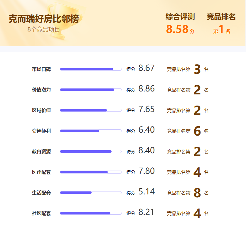 这些评分并非营销话术,而是基于克而瑞长期数据库与全网舆情分析得出的客观结果。比邻榜采用“相邻对标、圈层聚焦”机制,将龍宸壹號与市府板块内的风华瓴著、环球港湾等项目横向对比,评估更具现实意义。