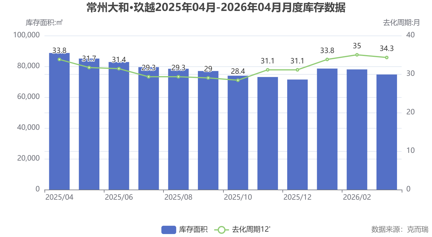 数据解读:以上数据来源于克而瑞。库存面积在2025年下半年呈下降趋势,2026年初略有回升,主要受新房源加推影响。去化周期在30-35个月之间波动,整体保持相对稳定,显示项目销售节奏平稳有序。