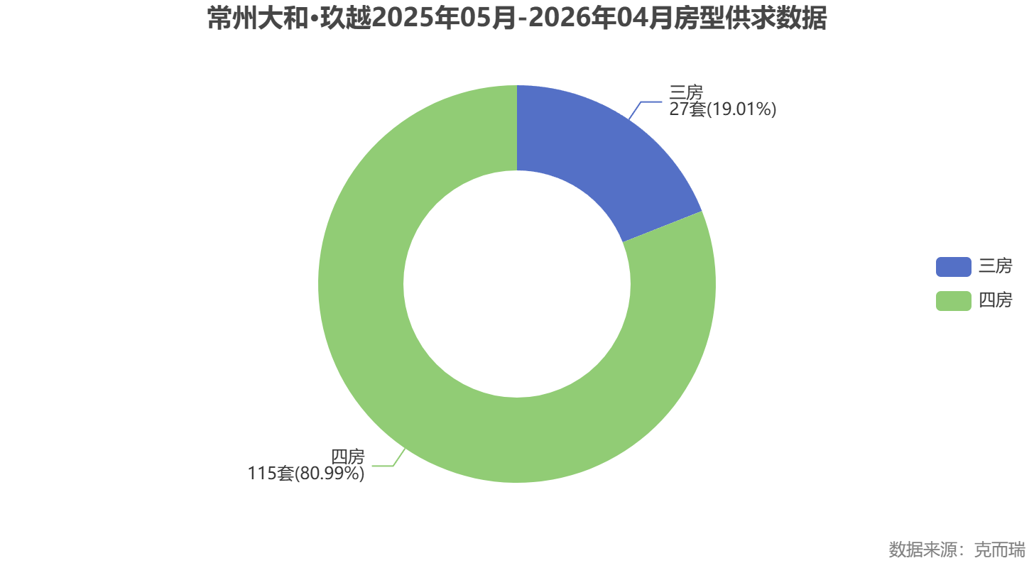 数据解读:以上数据来源于克而瑞。四房户型占据绝对主导,说明购买大和·玖越的客户多为多口之家或改善置换群体,对空间功能性要求较高。