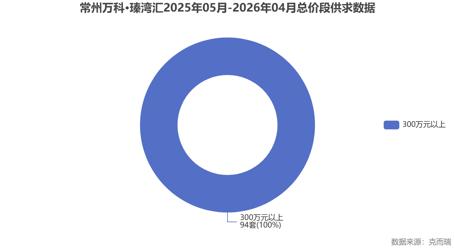 根据克而瑞数据,2025年5月至2026年4月,万科·瑧湾汇共成交94套,成交面积20961㎡。值得注意的是,所有成交房源的总价均在300万元以上,套均价高达415万元。