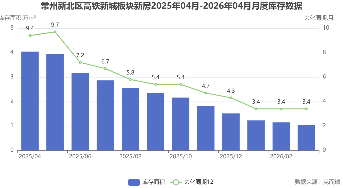 截至2026年3月,高铁新城板块新房库存面积仅1.03万㎡,库存套数52套,去化周期极短。