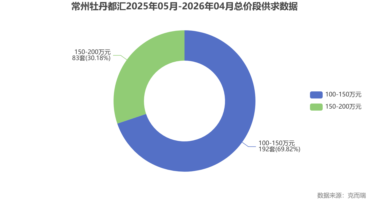 图表解读:以上数据来源于克而瑞。牡丹都汇近一年成交中,100-150万元总价段占据主导,成交192套;150-200万元总价段成交83套。这印证了项目“刚需为主、轻度改善为辅”的客户定位。