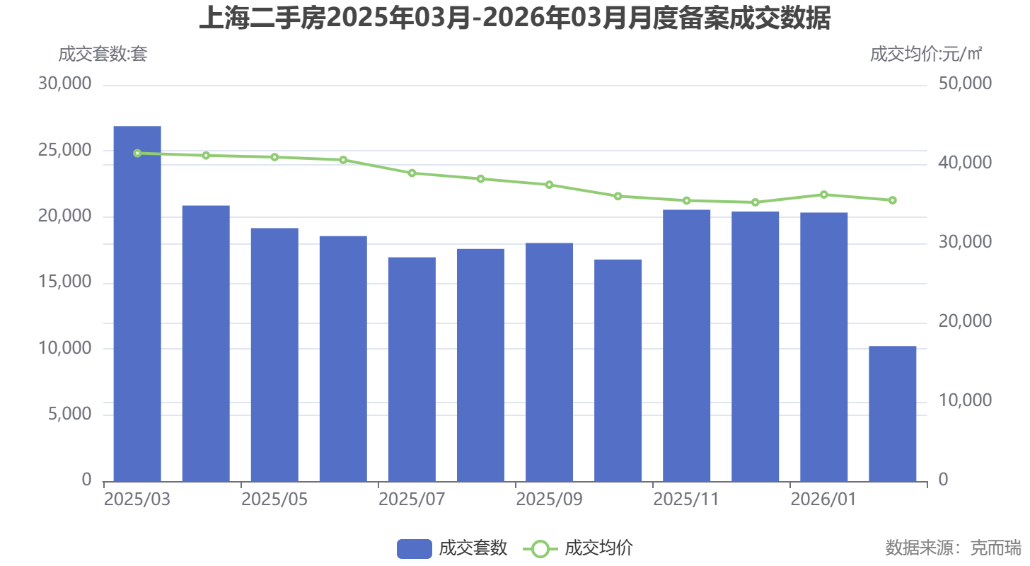 数据显示,2026年2月受春节假期影响,二手房成交套数环比下降近50%,但3月迅速反弹。克而瑞数据显示,2月成交套数虽低,但成交均价已企稳在35438元/平方米,为3月市场快速回暖奠定基础。