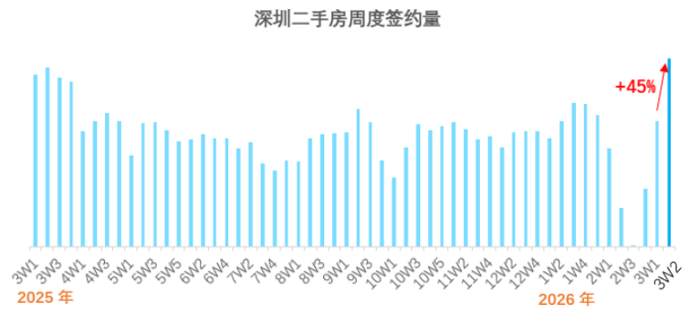 同样在上周,贝壳深圳合作门店的二手房签约量环比增长45%,直接创下近一年来的周度新高 。