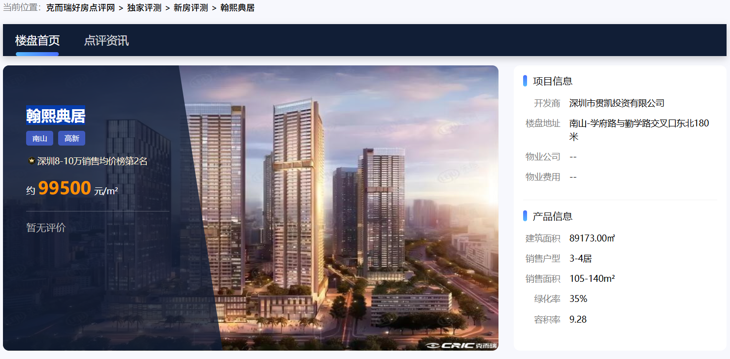 然而,正是这样一个黄金地段的项目,却因高达11.44的容积率引发广泛质疑。在深圳新房市场整体承压的背景下,翰熙典居的真实价值究竟如何?