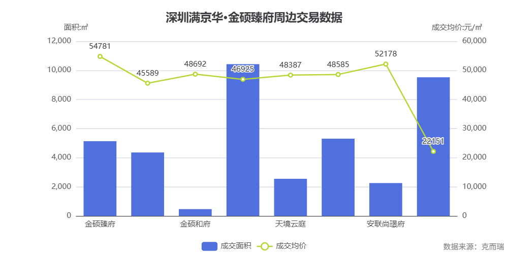 数据解读: 根据克而瑞数据,满京华金硕臻府周边 3 公里范围内,本项目成交均价 54781 元/㎡位居前列,高于金硕华府(45589 元/㎡)和金硕悦府(46925 元/㎡),体现其高端产品定位。星河天地成交均价较低(22151 元/㎡)主要因产品类型差异。
