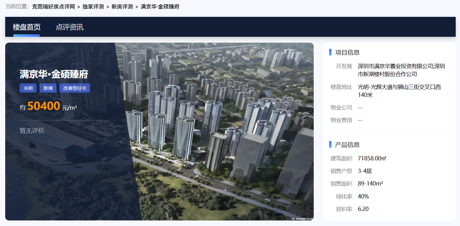 同价位竞争力分析:在深圳光明区 5-6 万元/㎡价位段,满京华金硕臻府的竞争力主要体现在: