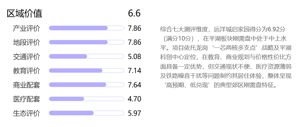 户型多样,从65㎡的2房到108㎡的4房均有,得房率约90%,采用竖厅或横厅设计,动静分区合理,空间利用率高,部分户型有大阳台或凸窗,提升采光通风和居住舒适度。此外远洋城启家园所在区域发展潜力大。项目位于平湖金融ICT产城芯,周边有华为等企业产业基地,未来人口导入和经济发展前景可期,房产增值潜力较大。