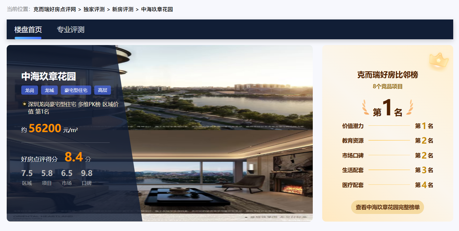 龙城街道G01046-0106宗地位于大运新城核心,规模优势显著。 地块紧邻龙城公园站,周边汇聚大运中心、优质学校等顶级公配,可打造为集高品质居住、商业服务、文体休闲于一体的东部标杆综合体。 附近在售新盘有中海大运玖章花园,目前备案均价约6.2万/㎡。 克而瑞好房网综合多项维度,用其优缺点分析等事实依据,为大运玖章花园作出客观评测: